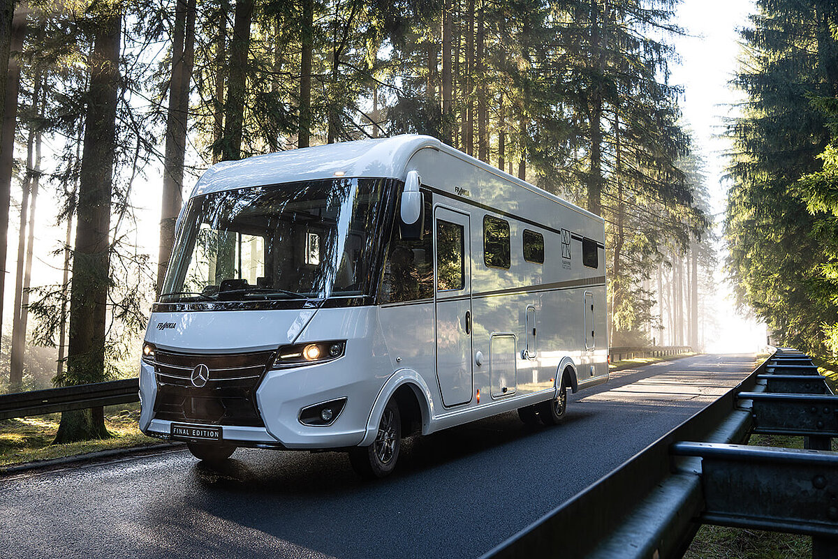 En 2026, FRANKIA rend hommage au puissant Sprinter et marque ainsi le sommet du développement produit : avec la FINAL EDITION, le PLATIN célèbre sa dernière génération – et donc la symbiose de LUXE, AUTONOMIE et TECHNOLOGIE MERCEDES-BENZ.