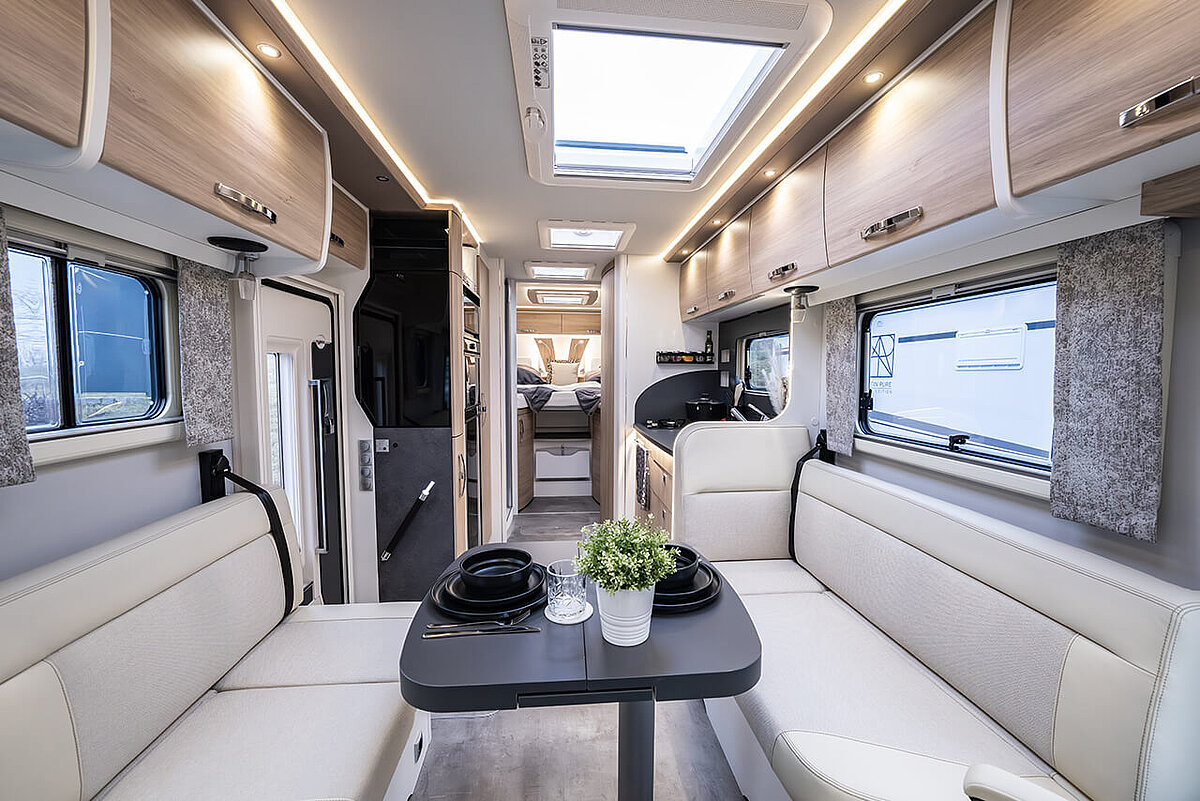 Il n'y a pas plus d'espace : avec une hauteur de plafond de 2,03 m, des lits latéraux qui peuvent se transformer en lit double en option, et un grand salon, le camping-car intégral de 5,5 tonnes est idéal pour les voyageurs exigeants qui attachent une grande importance à un grand espace.